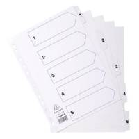 This Guildhall A4 index is made from durable 160gsm white board with Mylar reinforced tabs and spine for long lasting use. The tabs are numbered 1-5 and printed on both sides, with an index page also included for easy reference.